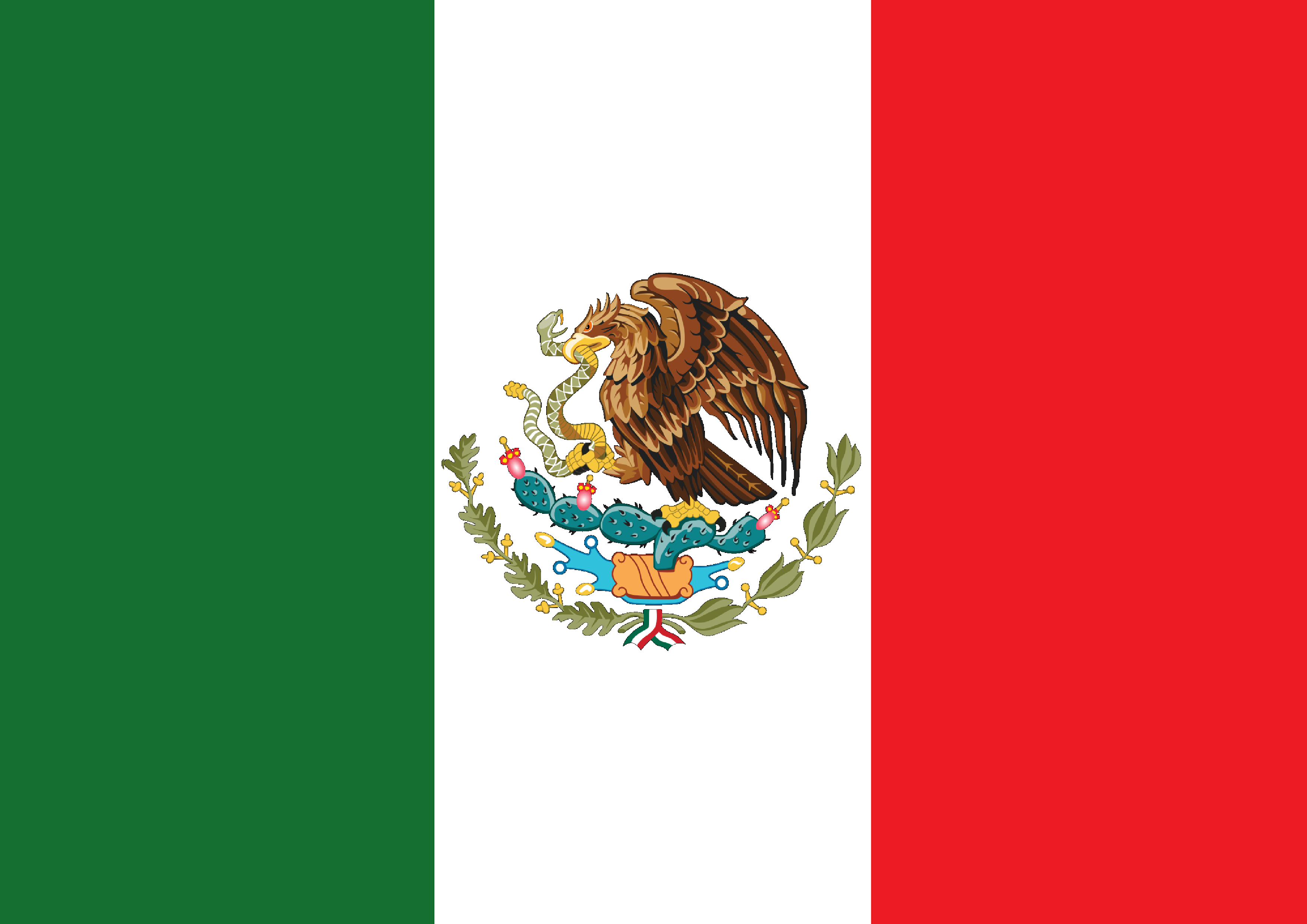 Mexico's flag is a tricolour. A flag made up of three colours, being Green, white and Red. following Mexico's independence from Spain after the Mexican War of Independence 1810 - 1821.